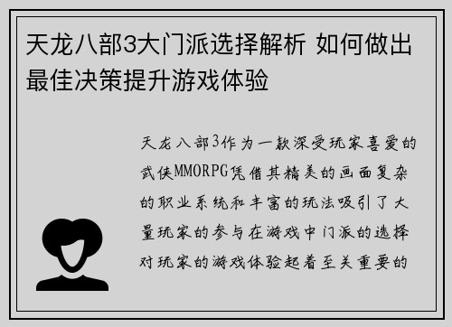 本文将深入解析女剑宗的加点方案,帮助玩家通过合理的加点和技能配合提升角色的战力。作为《剑网3》中的一大特色门派,女剑宗以其高爆发和精准的技能输出在游戏中占有一席之地。然而,要想在战斗中获得优势,单纯的技能掌握是不够的,合理的加点方案同样至关重要。本文将从四个方面详细讲解女剑宗加点方案的要点,包括“核...