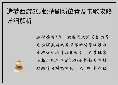 造梦西游3蜈蚣精刷新位置及击败攻略详细解析